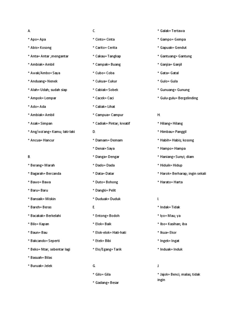Semua bahasa merupakan media untuk mengekspresikan makna itulah sebabnya dalam mengekspresikan kata baik lisan ataupun tulisan dibutuhkan penggunaan bahasa yang elegan dan efisien. Aku mendengarkan panggilanmu dari balik lautan dan merasakan sayap-sayapmu menyekaku. Kamus Bahasa Padang Minang Lengkap dengan Artinya.