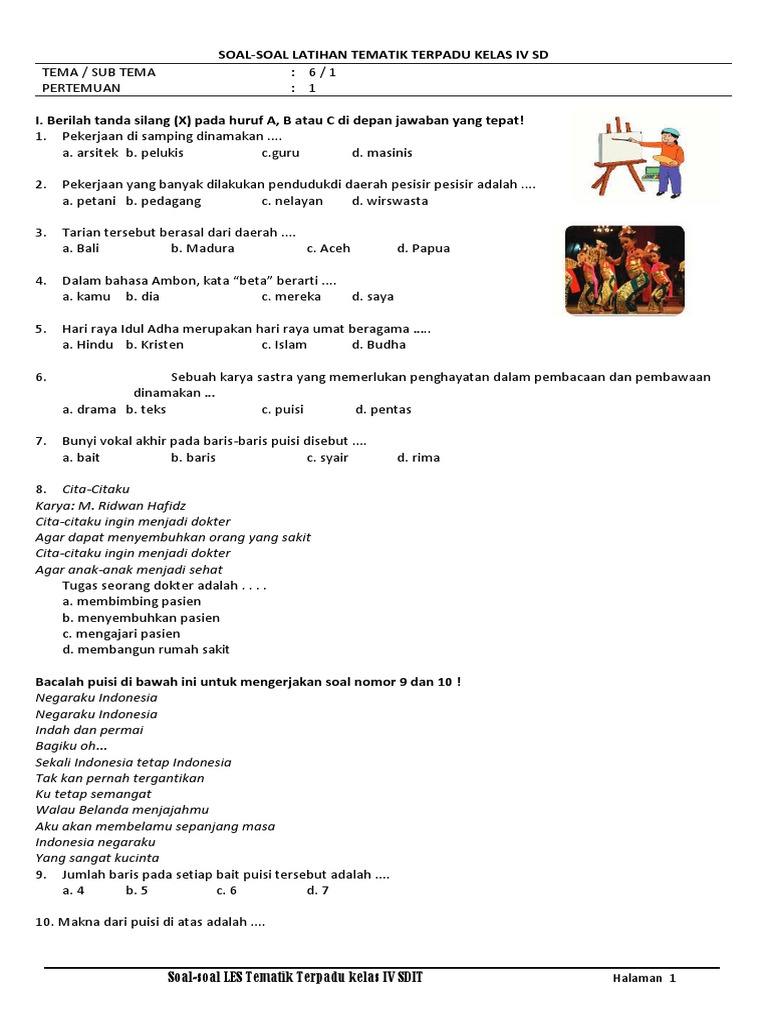 Soal Uts Kelas 4 Semester 2 Tema 6