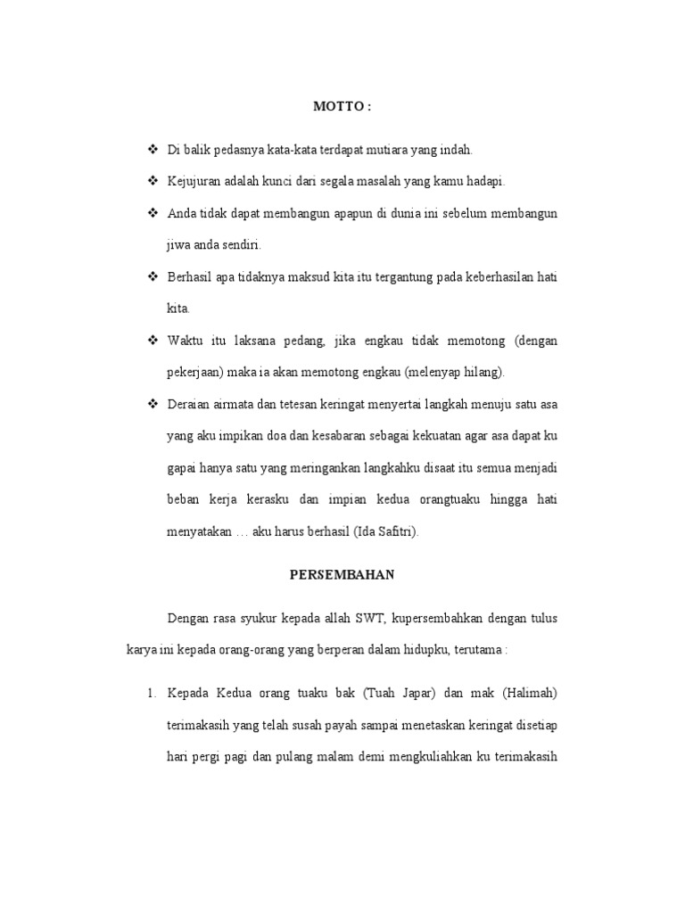 Contoh Motto Dan Persembahan Skripsi Sketsa