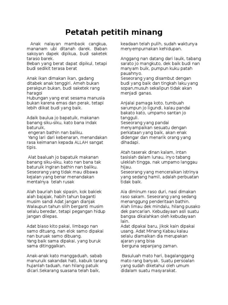 Pepatah Minang memperingatkan. Pituah Rang Tuo Minang Saran Orang Tua di Minangkabau saran yang sangat penting bagi para remaja MINANG jangan lupa Subscribe kengkawan sadonyo. 1000 Pepatah-Petitih-Mamang-Bidal-Pantun-Gurindam Bidang Ekonomi.