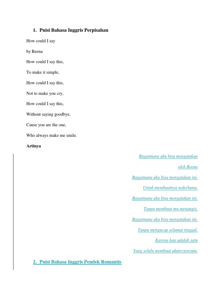 Puisi Bahasa Inggris Perpisahan Pdf