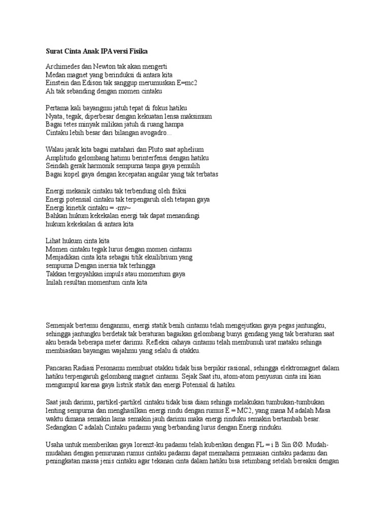 Cinta menurut anak ipa. Cinta adalah sebuah emosi dari kasih sayang yang kuat dan ketertarikan pribadi. Annesa Beauty Hijab Kumpulan Puisi Cinta Anak Mipa Puisi Cinta Ala Fisika Puisi Cinta Anak Fisika Nissaaaaa Wattpad. Kemewahan itu ibarat Cos 90 0 yang artinya tidak bernilai.