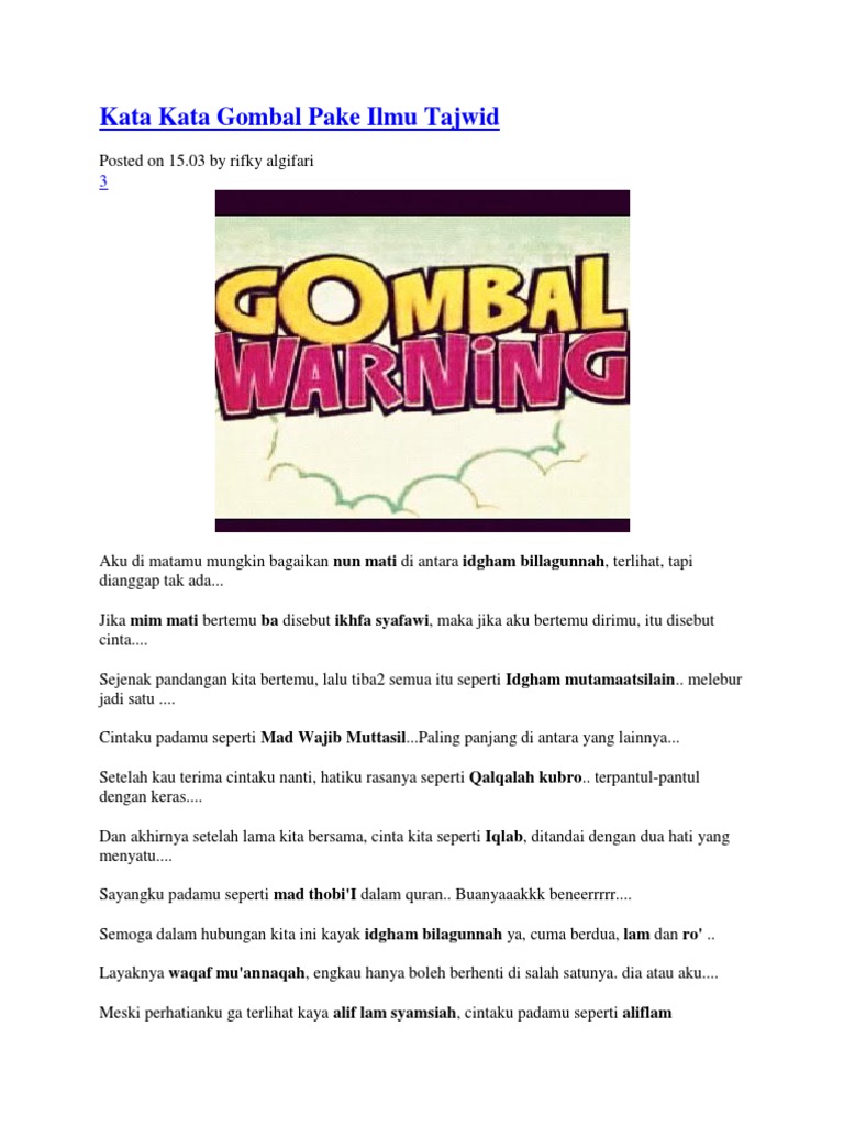 Ane mau sedikit nge Gombal ganbukan gombal biasatapi gombal tajwid. Saat mendengar katagombal banyak yang langsung berpikir negatif. Kata Kata Gombal Tajwid.