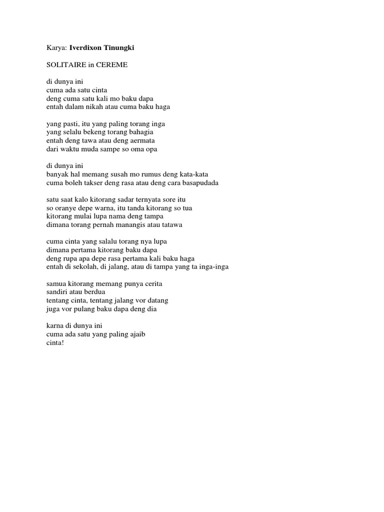 Solitaire In Cereme Puisi Cinta Dalam Bahasa Manado Barta1 Com
